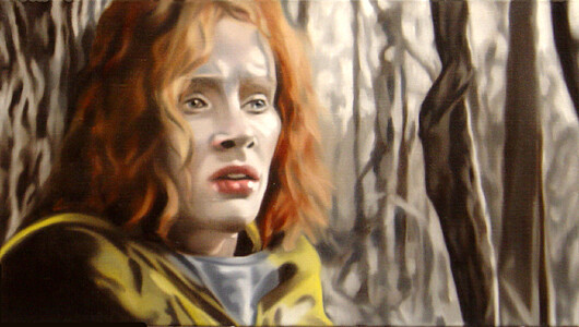 It is fair enough to say that Maarit Murka is already an accomplished painter. Her works demonstrate great deal of skill, confidence and ease. She also has a unique and clever manner of expressing herself through reinterpreting the visual clichés of modern mass media. Murka’s experiments with the “trendy”-looking photorealistic painting style began while she was still studying in the Estonian Academy of Arts. Over the years, this prolific painter has managed to develop that approach into a distinctive, personal means of expression. Although the most obviously striking feature of her works tends to be their sleek and highly marketable photo-realistic look, Murka’s true interests and ambitions reach far deeper from that glossy surface. On closer inspection,none of her paintings are actually true to the photorealistic genre. Despite maintaining the“coldness” of the classic photorealistic approach, Murka’s manner of handling odd snapshots andfilm stills contains more emotional involvement and painterly expressiveness than “proper”photorealism does. The manner she uses to re-create the (often familiar) images has a distinctly hallucinatory quality–this is evident in her many paintings of film stills as well as in the eerie self-portraits. Maarit Murka certainly makes good use of the heavily filtered, distorted aesthetics of commercial mass media to contemplate her own existence and world experience.Her rich and reflective solo exhibition titled “The Truth is Out There” was also ripe with references to popular culture–however, not using them to appear clever, quirkily campy or satirical–Murka’s approach is far deeper than that. Although the premise of the show might sound gimmicky, she is nottrying to offer quick laughs–rather possibly not any laughs at all.She picked the tagline of the cult TV series “The X-Files” as the title and painted a rather matter-of-factly rendered series of iconic images from heavily hyped (not necessarily good nor significant)modern American horror films like “The Village”, “The Ring”, “Saw” and “The Blair Witch Project”. Inorder to present those, she created a naturalistic thicket inside the gallery, with real trees and a thicklayer of smelly decaying dead leaves on the floor. The exhibition also had a sound background in the shape of a rather discreetly displayed video clip emitting strange noises,panting and screams (the imagery of the video consisted mostly of wandering in the woods, again reminiscent of the “Blair Witch”). The effect was uncanny: Murka managed to turn the safe gallery environment into a morbidly jolly “theme park of horror” of sorts and through it, point to our culture’s bizarre understanding of fear and horror as categories of consumer goods.I find Maarit Murka’s media-saturated, beautifully bleakvision both pleasing to the eye and fascinating as a thought process