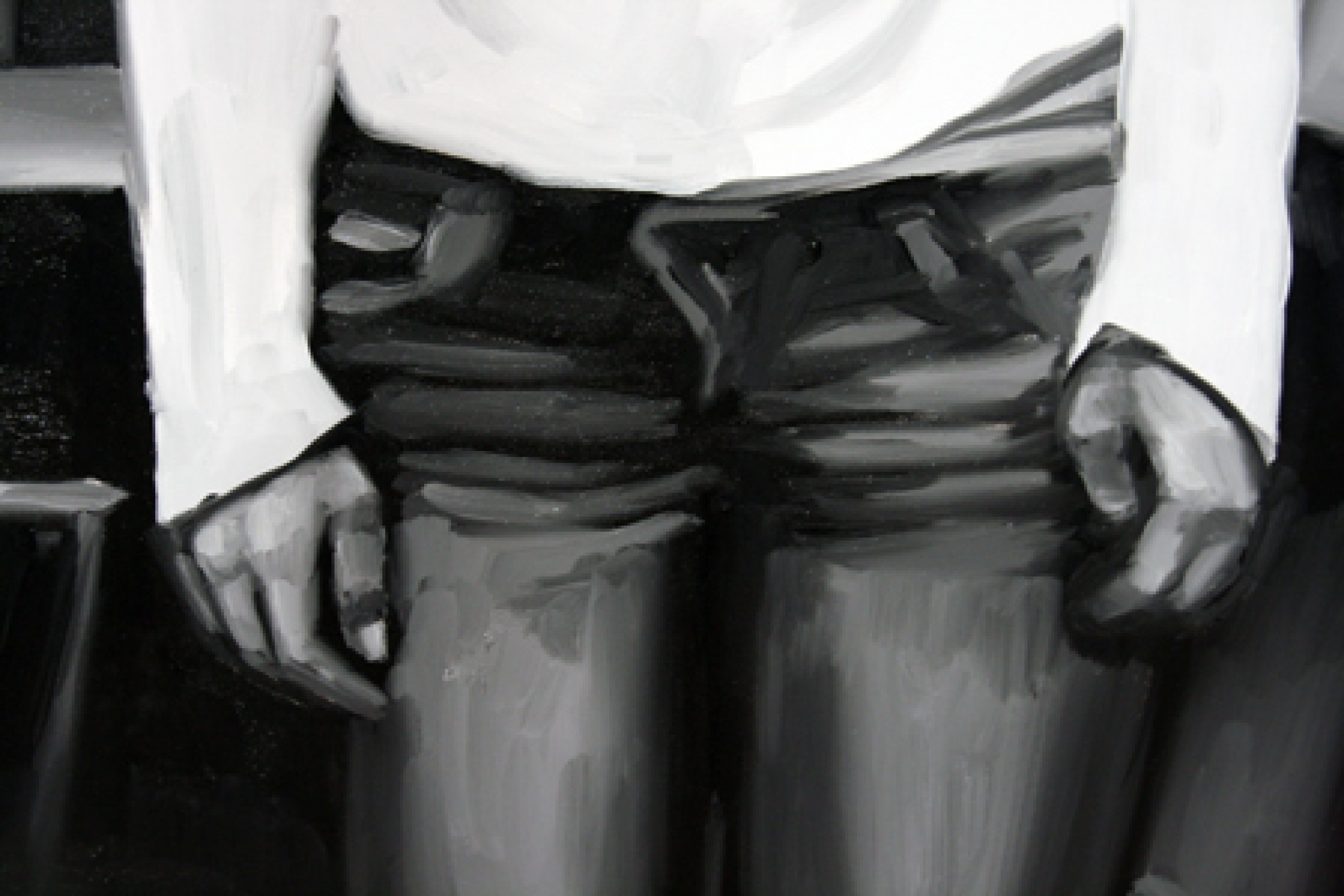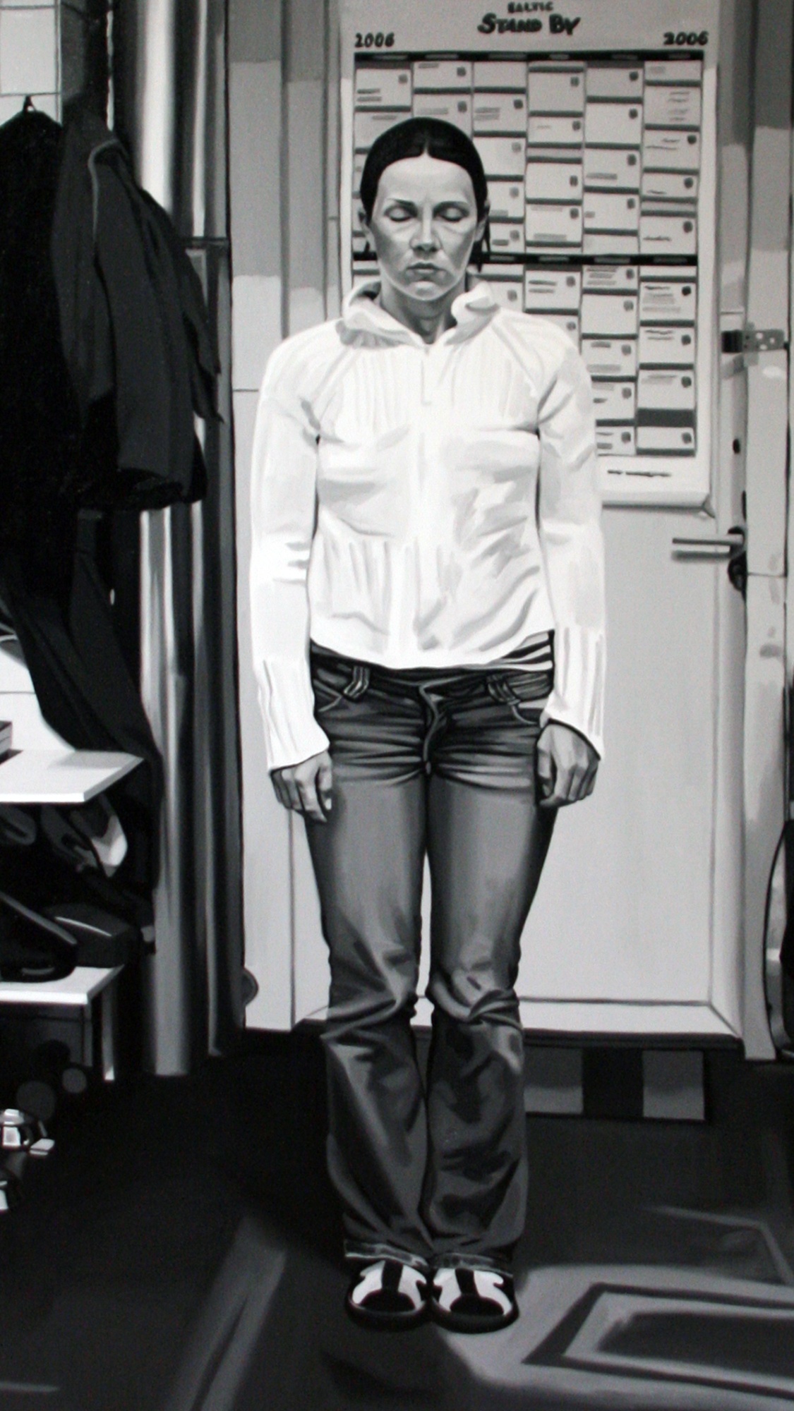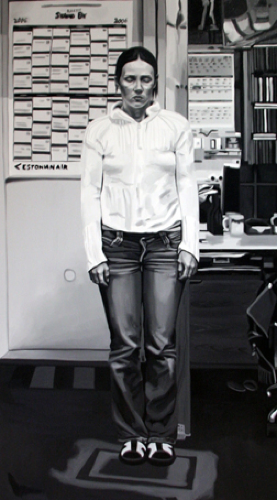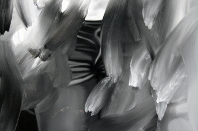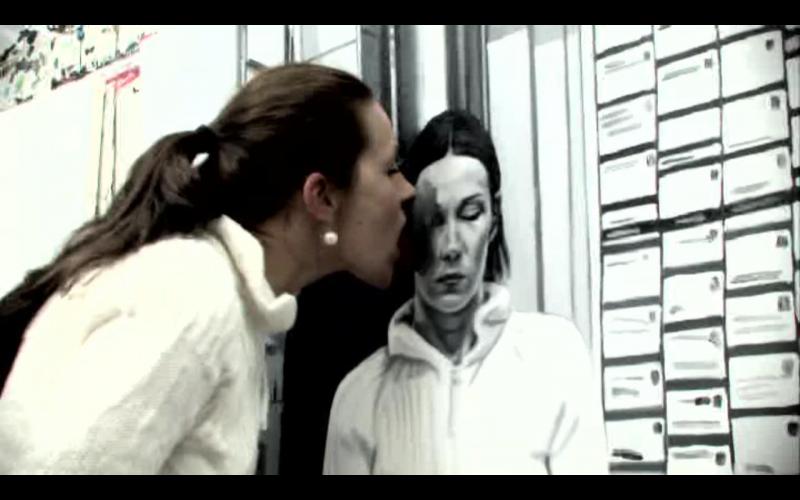 Art science offers much more possibilities than does conventional dry scientific science. A dangerously non-scientific result was received by Maarit Murka by suppressing the sense of balance and also all other senses by using alcohol, so that the breathalyser showed 0,43. In this painting we can’t see the gloominess that is so characteristic of Murka, she is smiling through an impressionistic mist, as much as impressionism can be possible in a black-and-white painting. Is it that for Murka the breathalyser is also a mentalyser? As already told, as a snack she used one of her paintings, when she licked the oil paint off a freshly painted canvas. The movement of the tongue gives the painting texture like the petals of a chrysanthemum. Video shows the process itself. Maarit Murka also has companions of taste, for example Ani K. from the Republic of Thailand has painted Mahatma Ghandi on a cross and Osama bin Laden in a cave by sticking his tongue in paint, the video is also visible on YouTube. When googleing paint licking you can only get to pages about safety and porn - maybe Murka is the first in the world to do something like that. If you ask two people to shake hands for five minutes, then usually they estimate the time to be longer, but exchanging kisses always takes less time. Maybe one of the kissers had eaten garlic and the other licked paint. And as we already mentioned exchanges, then we cannot leave unmentioned the exchange auction held in Tamm gallery, curate by Maarit Murka. This is an auction where pictures are not bought and sold for money but exchanged with each other. Why can’t a piece of art be measured by a TV? Politicians offer themselves on advertisement posts, carrying signs „exchange“. An elementary demand for every science is finding the right equivalent.