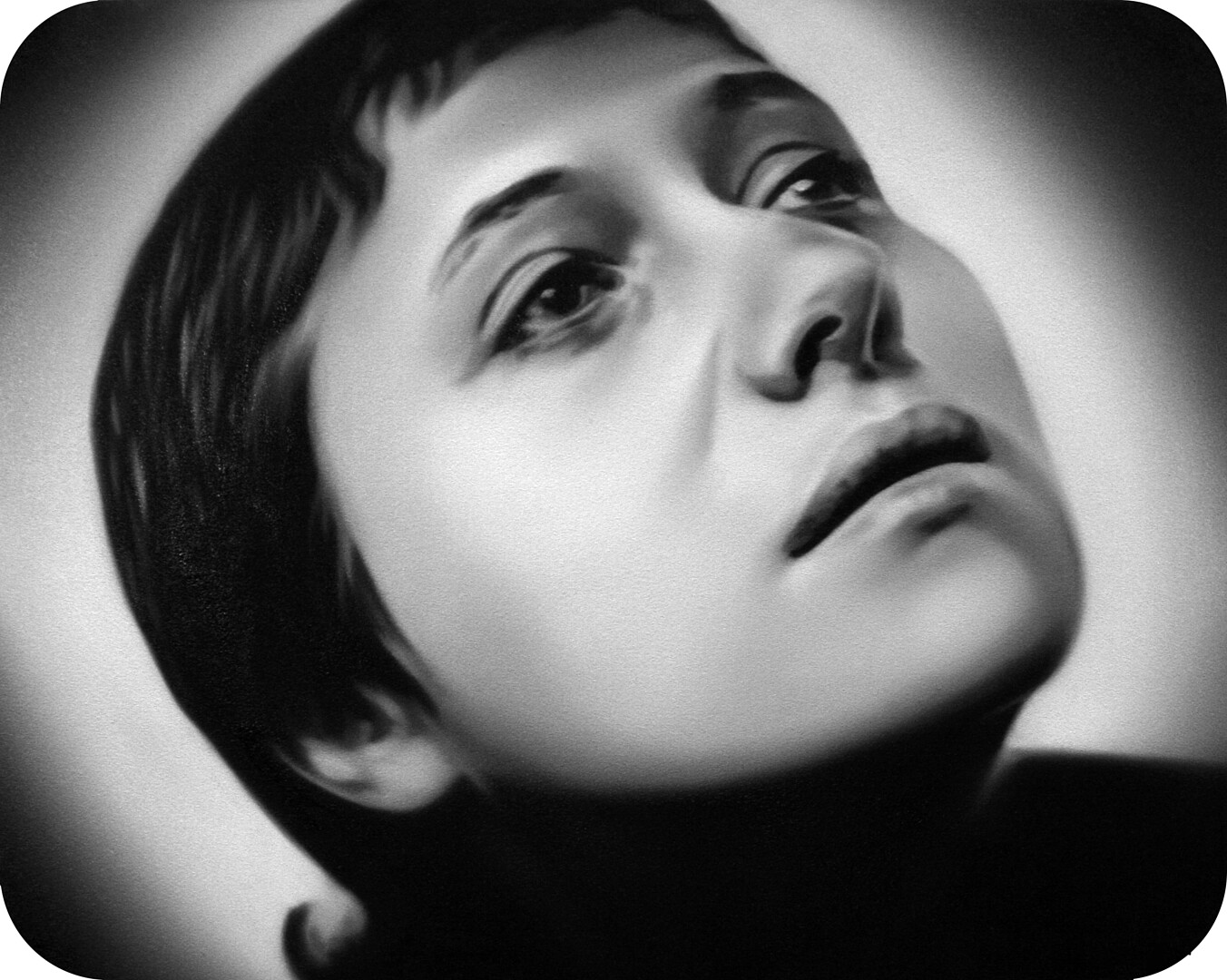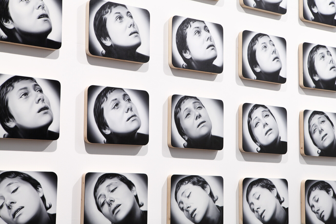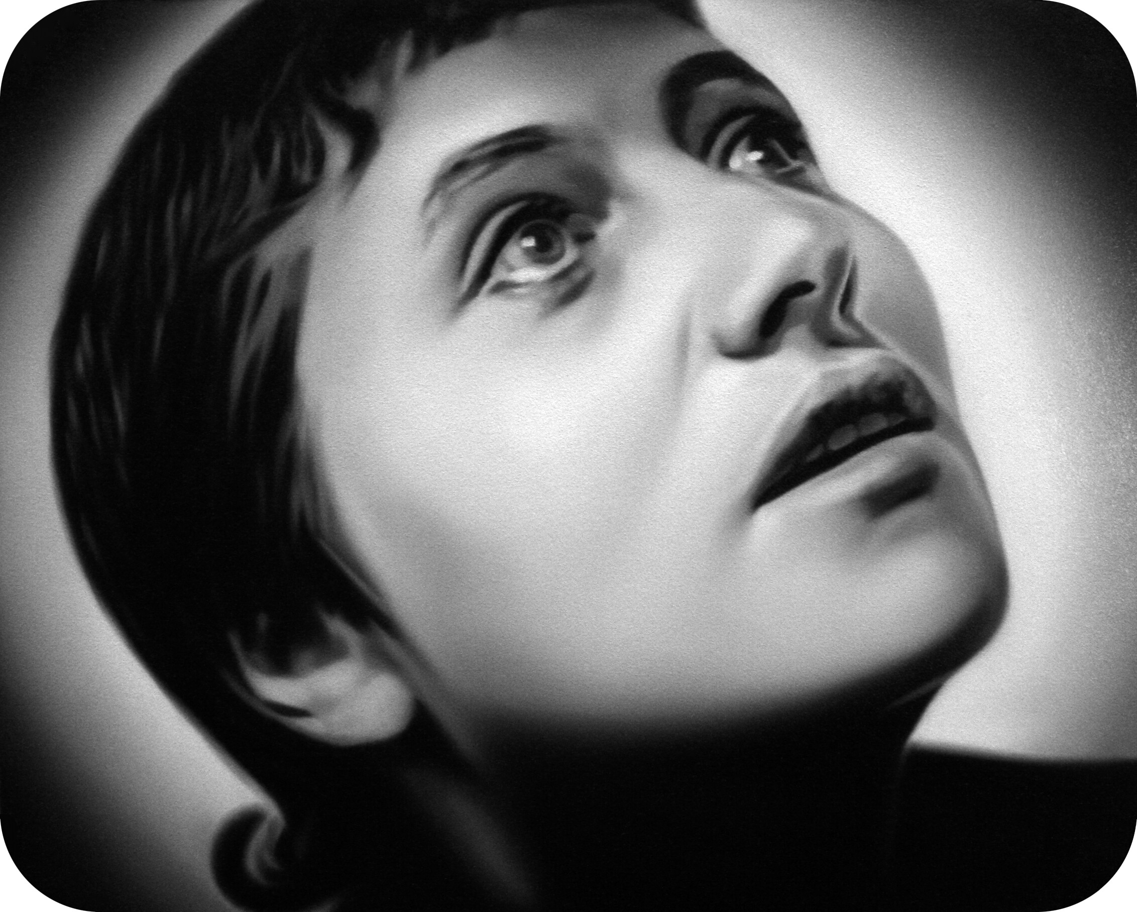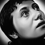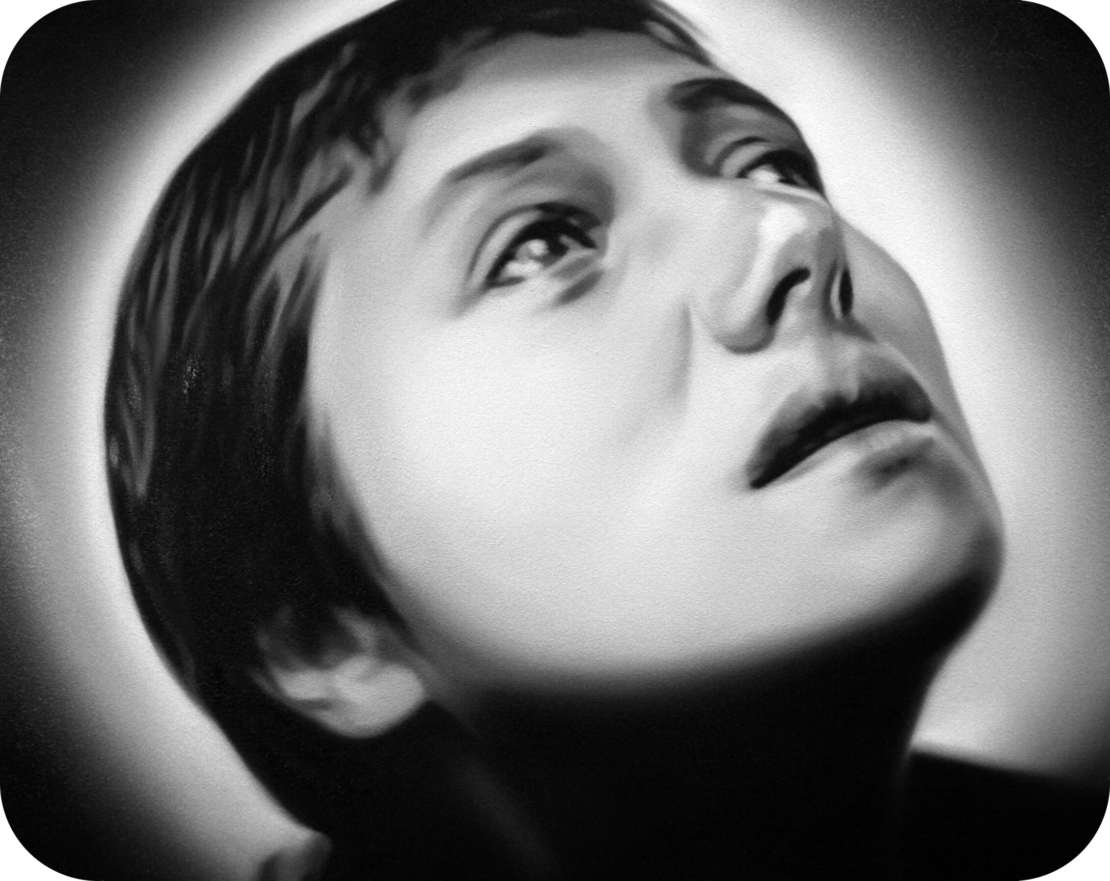 Murka’s series of paintings depicts moments from the 1928 movie „The Passion of Joan of Arc", where the hair of the heroine is cut off before execution. This is a motive of humiliations and the violent suppressing of the personality as is explained in the cover letter of the exhibition written by Ellu Maar. Here we can see the difference between forced and voluntary cutting of hair, where the latter is seen as rebirth.