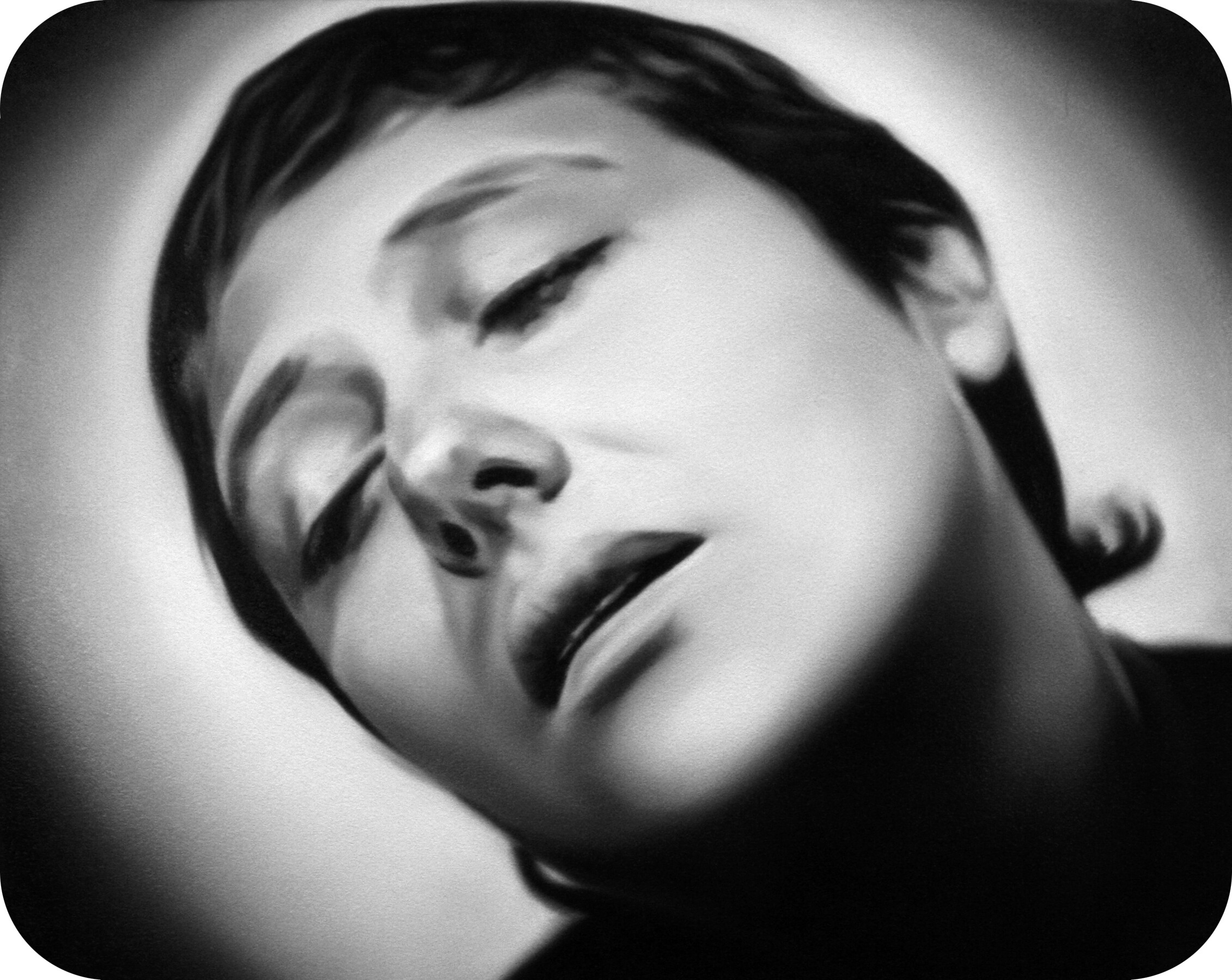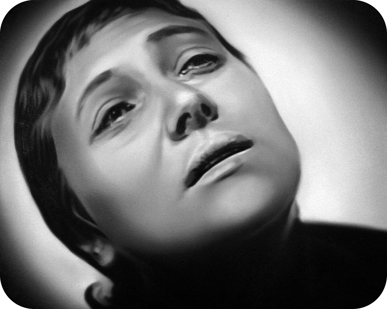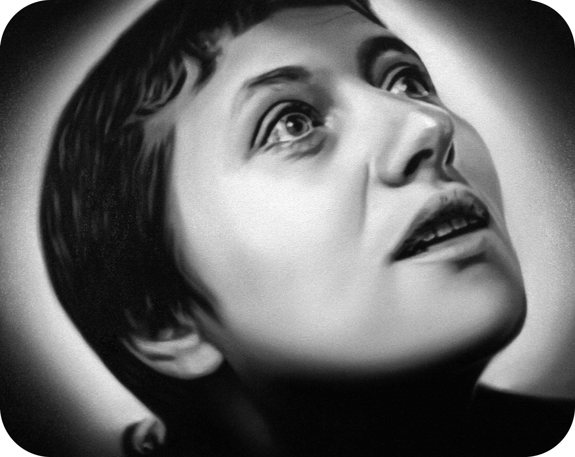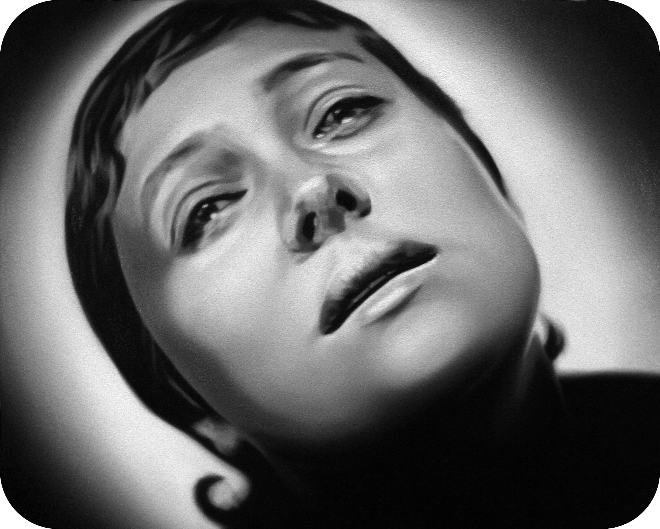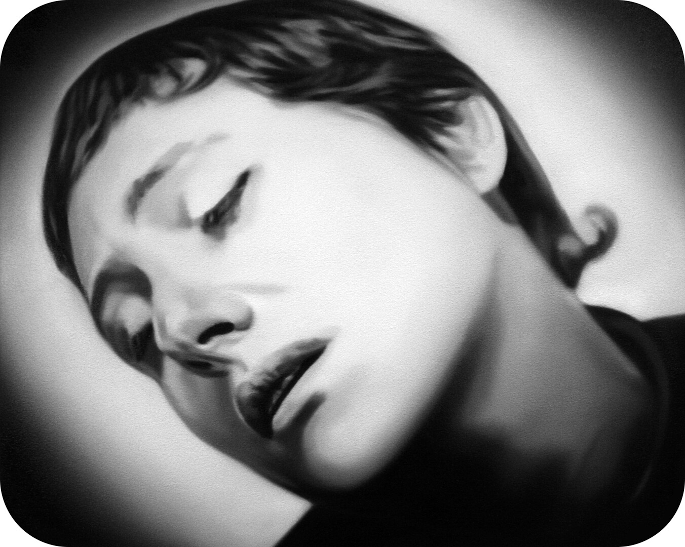Murka’s series of paintings depicts moments from the 1928 movie „The Passion of Joan of Arc", where the hair of the heroine is cut off before execution. This is a motive of humiliations and the violent suppressing of the personality as is explained in the cover letter of the exhibition written by Ellu Maar. Here we can see the difference between forced and voluntary cutting of hair, where the latter is seen as rebirth.