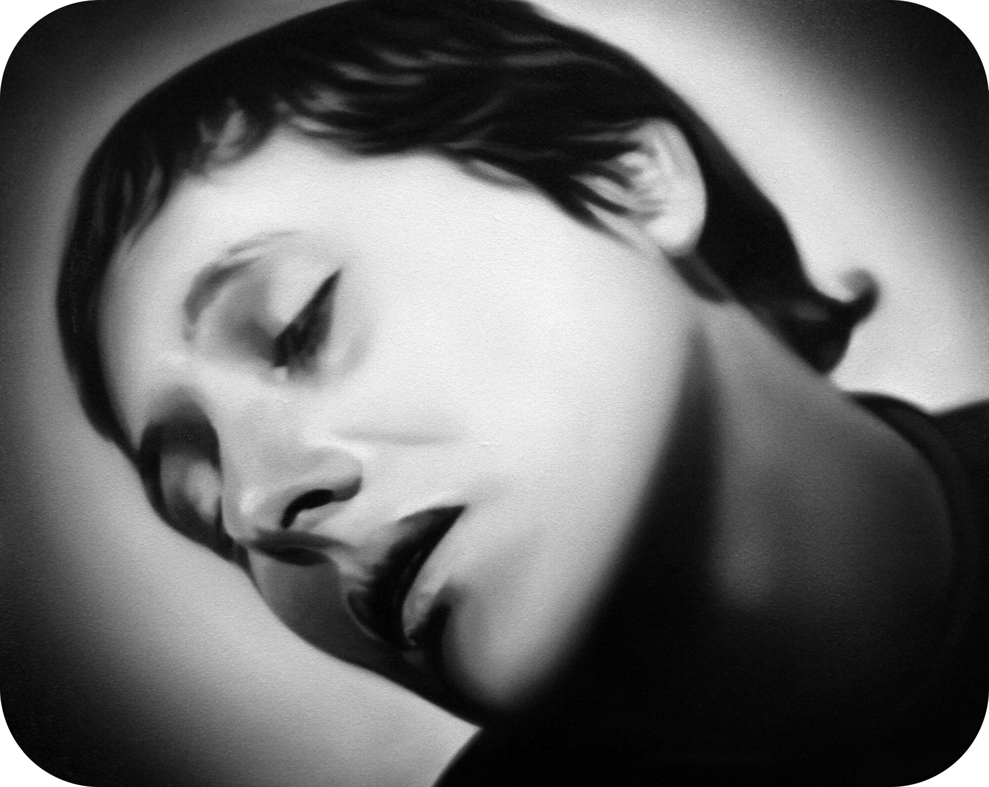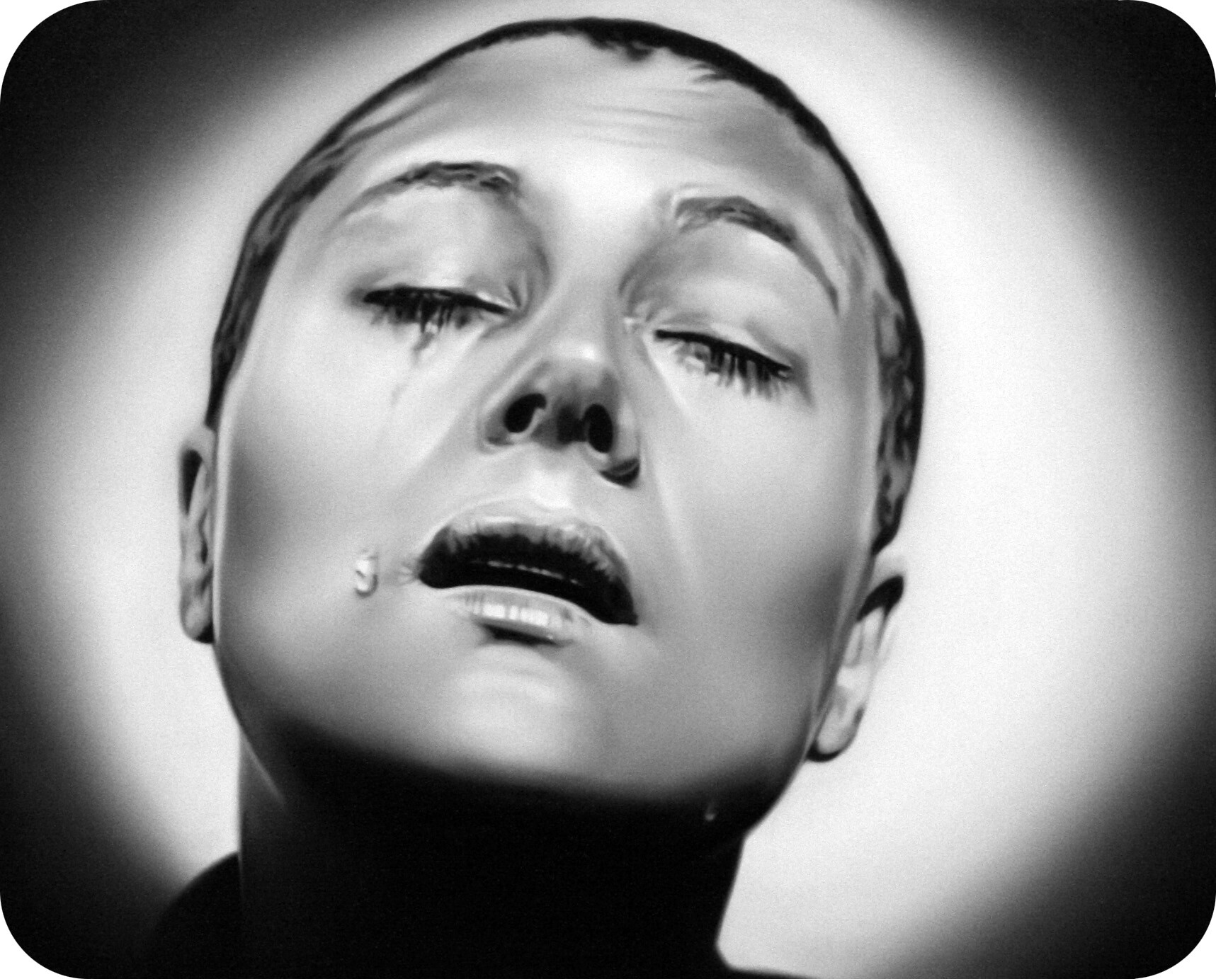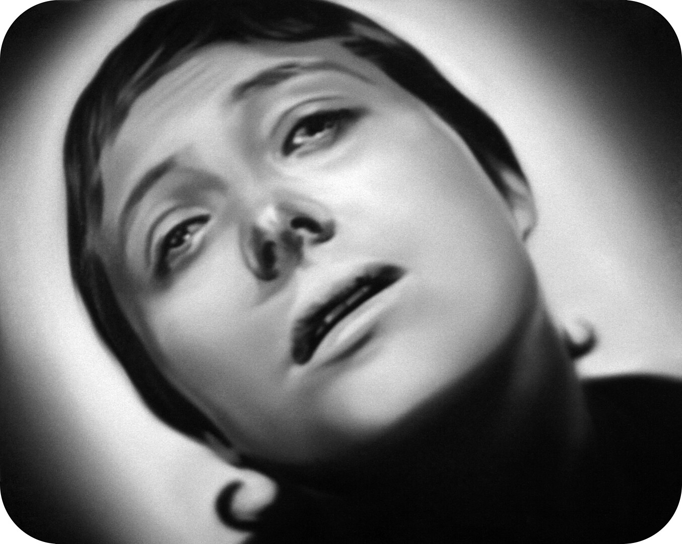 Murka looks more closely at a few motives directly connected to cutting hair. On the balcony of Vaal there are stills painted from the cultic silent movie "The Passion of Joan of Arc" (1928), where in one scene the hair of the heroine is cut off before taking to execution. The cutting of the hair is an act through which the victim violently loses her personality, is a humiliation motive that can be found in several cultures, and is in use even today for example in the military, where the ritual meaning of this practice comes persistently and secretly along behind the pragmatic reasons. In mythological meaning the forced cutting off the hair can be considered as taking away the victims vitality.