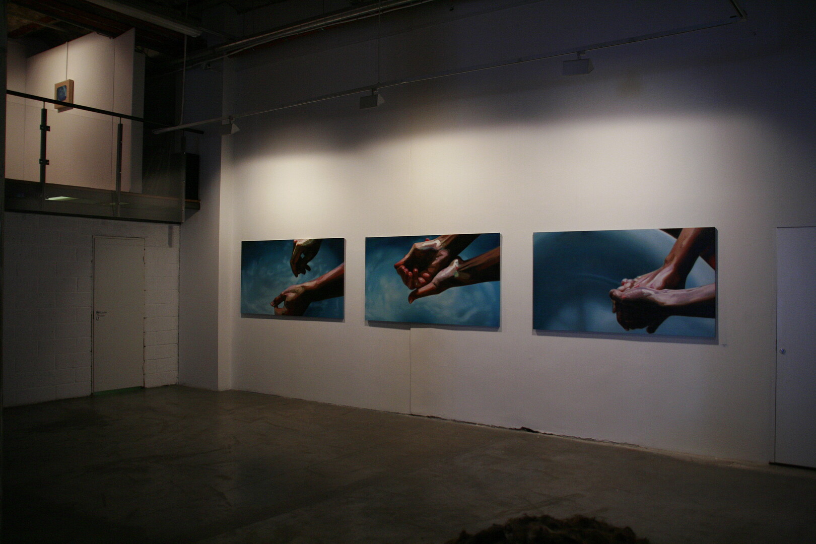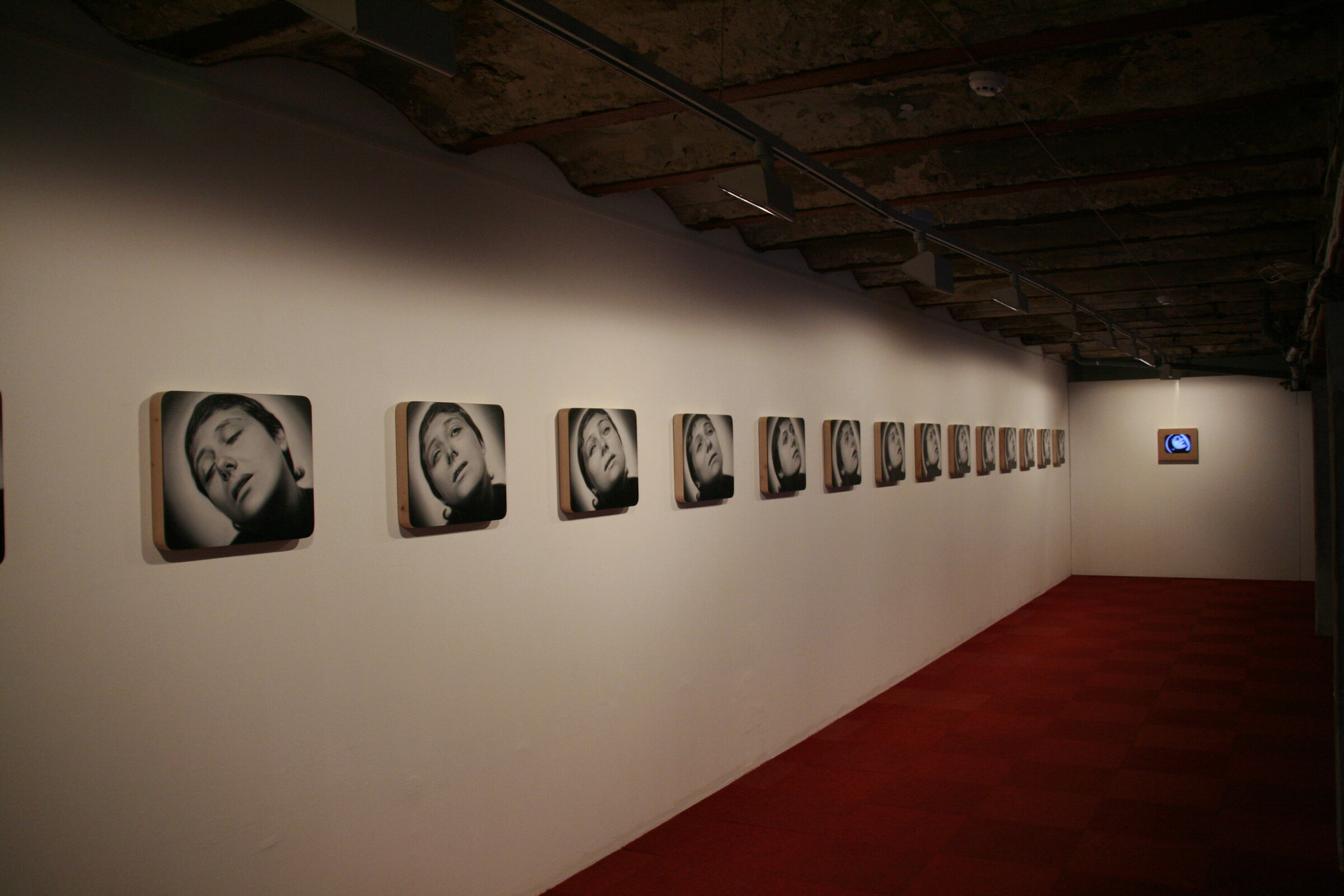 The third screen window that belongs to the same video projection and the paintings and installations added to it, shows what a strange objective meaning potential hair has: hair is a important and unavoidable signal of sexuality and attraction, part of identity and the securer of the “me” of a person and will bleed empty of that meaning as soon as it is separated from the body. They will become just garbage, but cut off hair can also be repulsive and make ground for black magic.