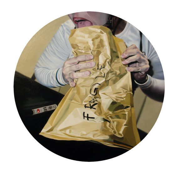 Envelope, installation view "Moment", d 120, oil on canvas, 2010 "Fragile", d 120, oil on canvas, 2010 ‹ › ‹ ›