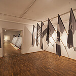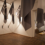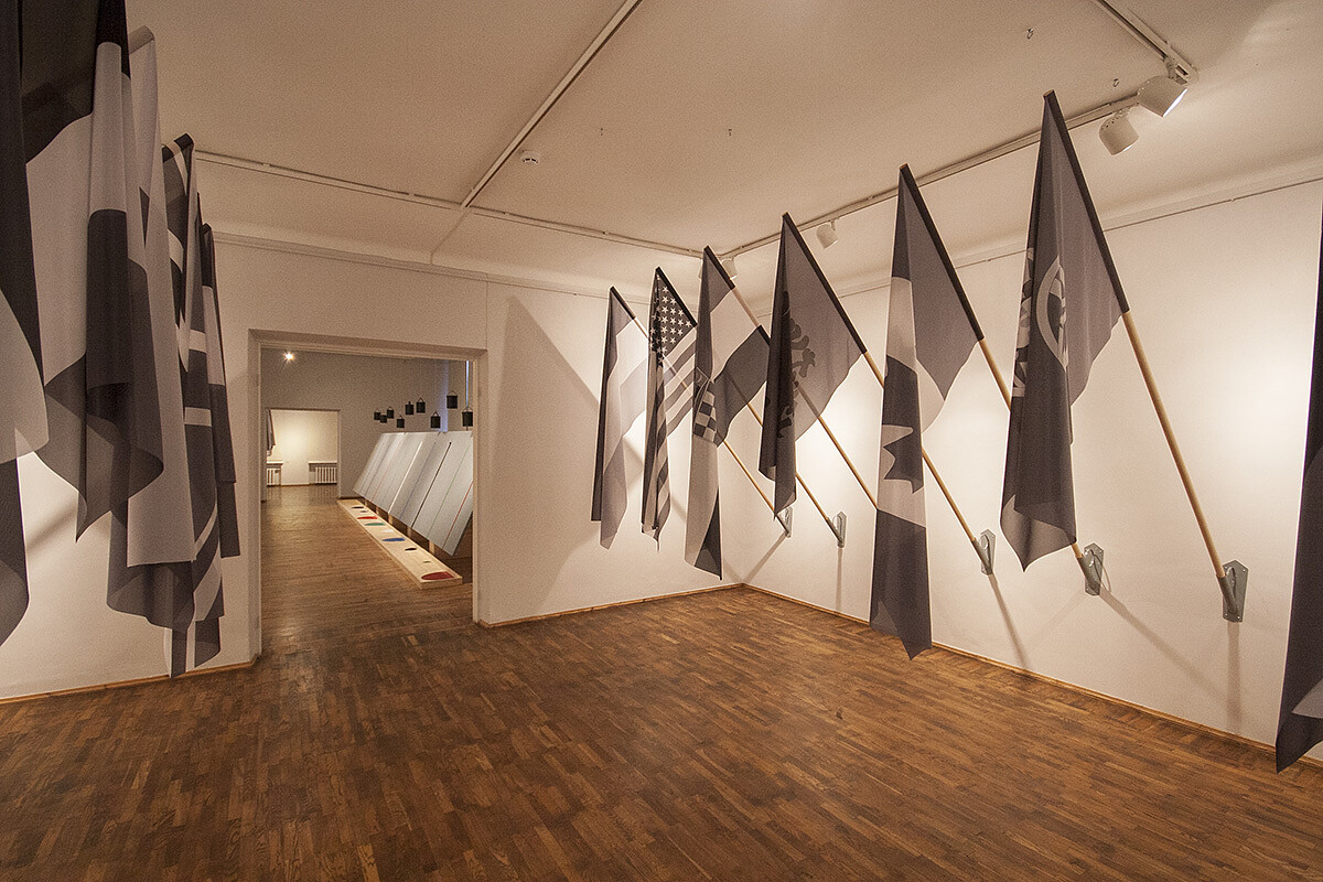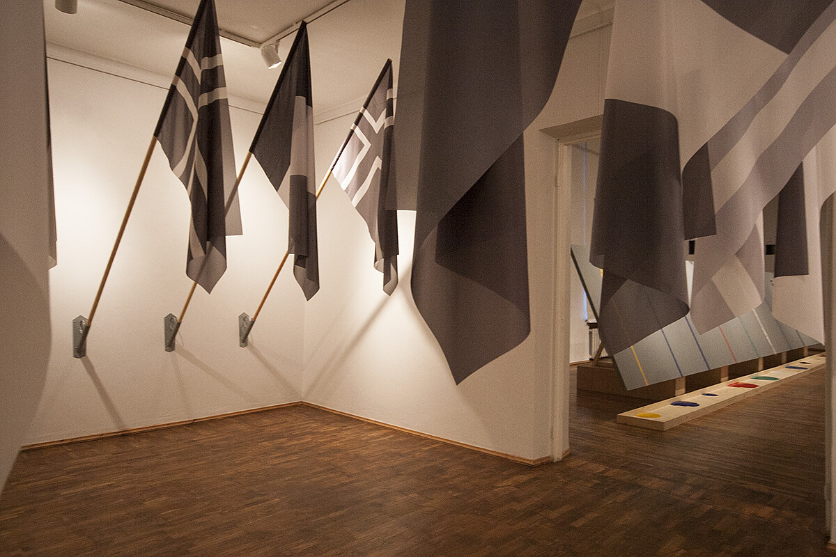 Murkale omases horisontaalsete väljalõigete kõrvutamises võiks ilmselt põhjendatult näha installatsiooni „Kontakt” kujunduse võtit: reas ripuvad mustvalged lipud, neid kordavad vertikaalsed värvinired. Kuid see vaid kinnitab, et tegemist on Murkale iseloomuliku lahendusega, mis ei näi pakkuvat võimalikku tõlgenduslikku lahendust.