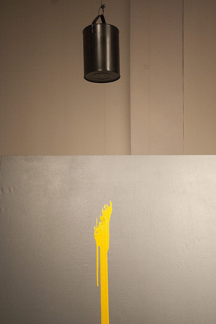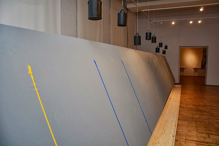 Maarit Murka näitus „Kontakt” koosneb lihtsustatult öeldes mustvalgele taandatud NATO riikide lippudest, läbi Tartu Kunstimaja teise korruse keskmise saali ulatuvast hallist lõuendist ja reast rippuvatest värvipottidest, millest tilgub eri tooni värvi, mis mööda halli lõuendit niredena alla valgub.