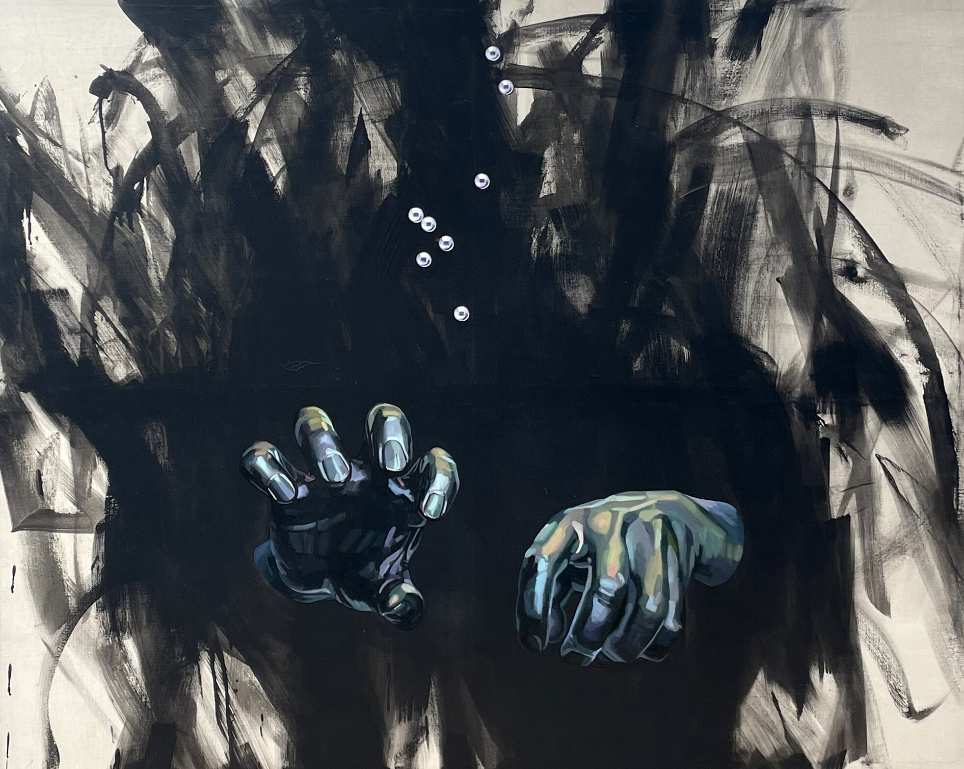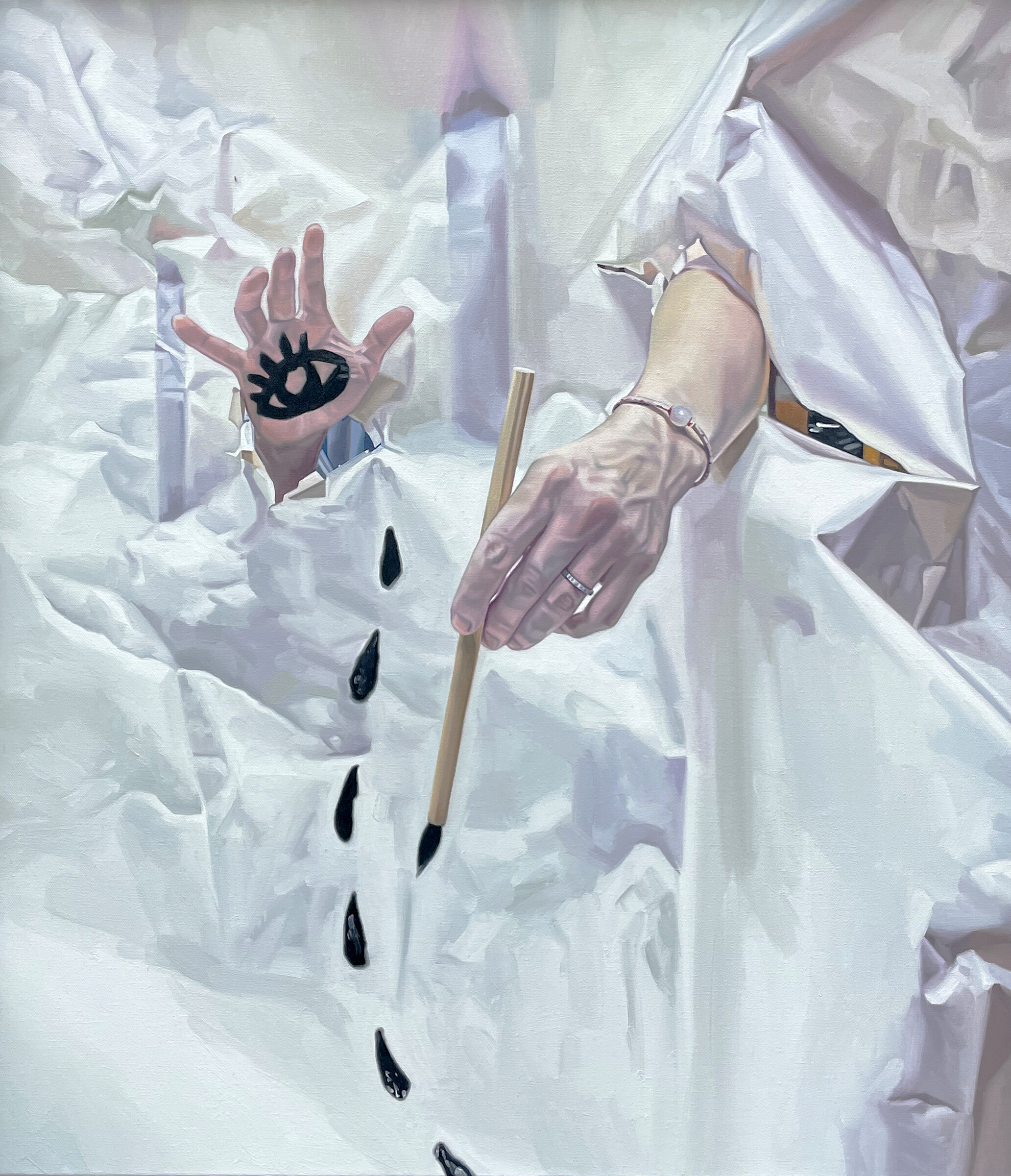 Kui vaadata väljapanekut patsiendi pilguga, on ka ülejäänu enam kui vastuvõetav. Peamine korduv motiiv ootesaalis on käed, nagu seda näeb sissejuhatavas teoses „Tabula Nero 1“. Korduva motiivina on Murka torganud oma käed läbi paberi ning maalinud seda, kuidas kehast eraldatud jäsemed oma „paberkehandile“ suu, silma ja nina moodi asja maalivad. Nii nagu ka tabletimaali puhul, toetuvad siingi motiivid suuresti kunstniku enda suutlikkusele mängida tooniga. Maalides pole midagi ülearu dramaatilist, nende teostus on meeldiv. Kuigi „kunstnik maalimas iseennast lõuendile“ võiks motiivina välja kukkuda kuidagi juustuselt või äraleierdatult – sürrealism sai sel aastal siiski juba sada –, on neis teostes seda komistuskivi osatud vältida.