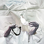 Kahjuks ei saanud ma jääda nende maalide juurde kauaks uurima, kumb siis enne tuli – pind või lärakas? Avastasin ennast äkitselt sügaval kliinikus, koridoris, mis viib erinevatesse kabinettidesse, ning äkitselt haaras mind endasse paras nõutus. Esiteks kõlab „Läksin arsti juurde, aga siis oli see äkki hoopiski näitusesaal“ nagu olukord, mida keegi võiks unes näha. Teiseks teeb ikka jube kohmetuks vaadata pilte seinal koridorides, mille kabinettides kurdavad inimesed oma isiklikke muresid. Või seista ooteruumis, kus sind piidleb juba mainitud varateismeline. Või üleüldse teha galeriikülastaja tegemisi rõhutatult kliinilises kontekstis.